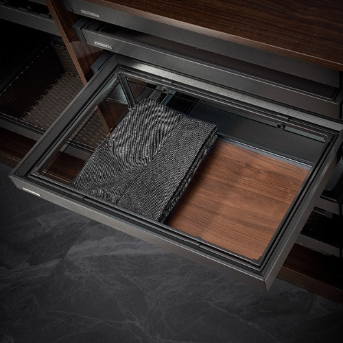 Are you looking for storage solutions that combine superior functionality with stunning beauty for your closet or dressing room? We offer you the Glass-Sided Drawer Pull-Out Accessory, an innovation that will transform your drawers into a perfectly organized work of art, with a touch of luxury befitting your modern home in Saudi Arabia.