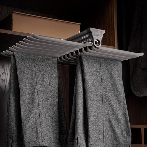 Make your closet more organized and efficient. Invest in a double-sided pants hanger with a pull-out mechanism from the top, and enjoy an unparalleled clothing organizing experience!