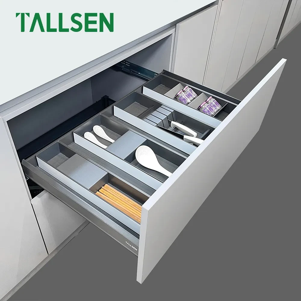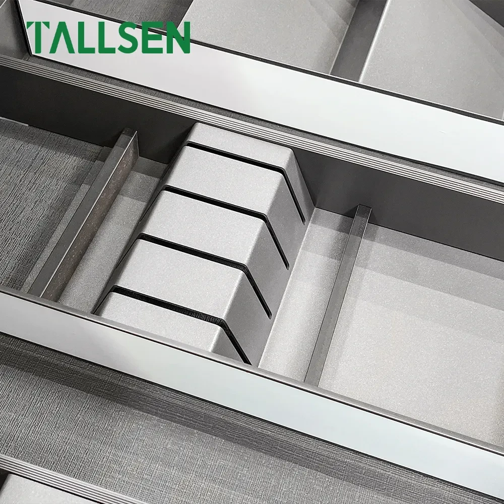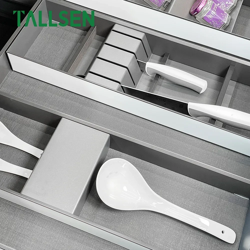 يعتبر منظم الأدراج من تالسن (Tallsen) الحل الأمثل للارتقاء بنظام تنظيم المطبخ لديك وتحويل الفوضى إلى ترتيب متقن. صُمم هذا الإكسسوار بدقة متناهية لترتيب الملاعق، السكاكين، وأدوات المائدة بشكل يحقق أقصى درجات الكفاءة والجمالية داخل الدرج. يتميز المنظم بتصميم عصري وأنيق يتناسب مع أدراج المطابخ الحديثة، وهو مصنوع من مواد عالية الجودة (سواء الستانلس ستيل الفاخر أو البلاستيك المقوى الآمن غذائياً) لضمان الاستدامة وسهولة التنظيف. بفضل تقسيماته الذكية، يمنع هذا المنظم تداخل الأدوات ويحميها من الخدش، مما يجعل الوصول إلى كل قطعة سريعاً وسهلاً.