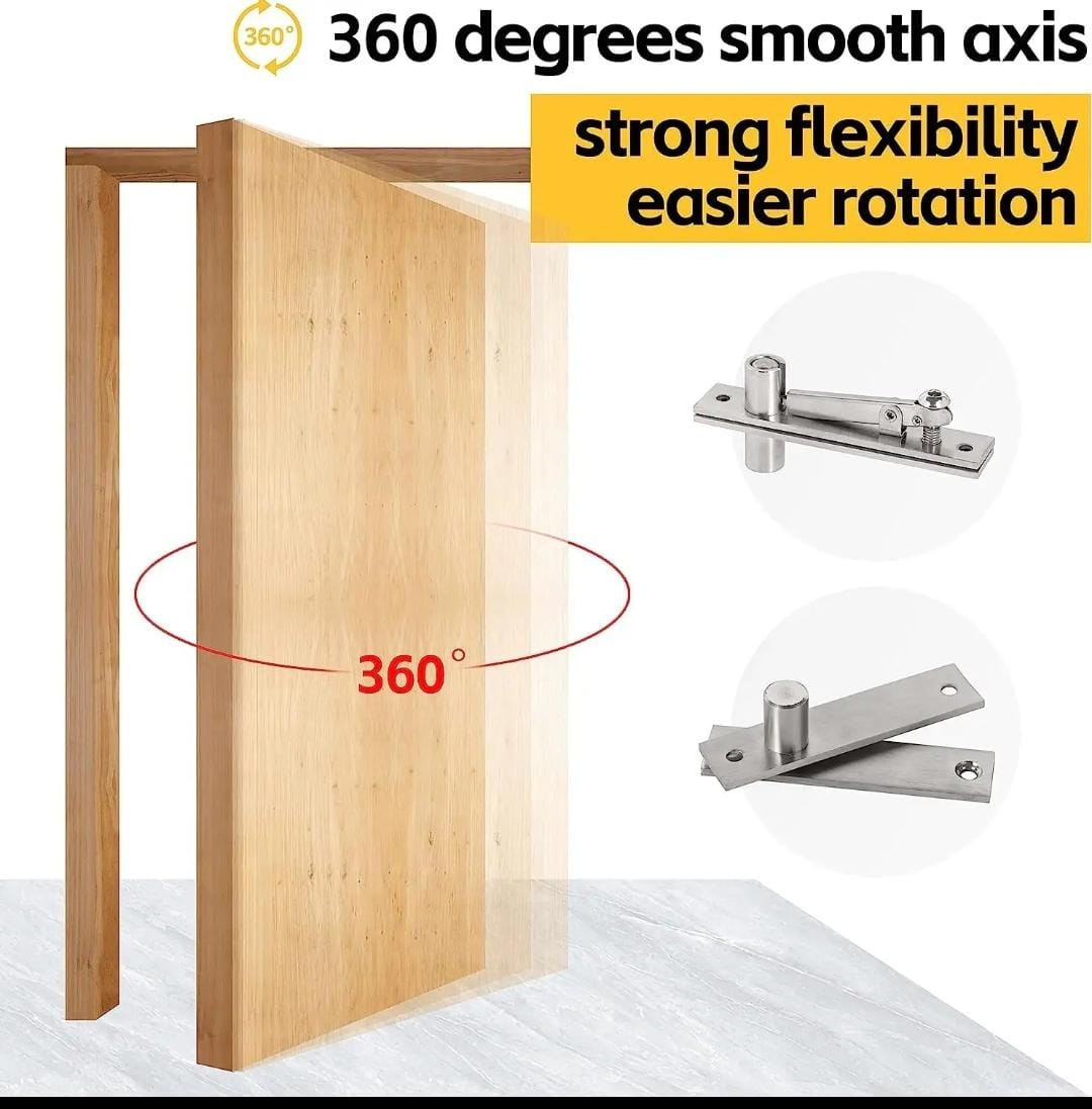 75mm Length Stainless Steel 360 Degree Pivot Door Hinge, 2 Pieces Made of stainless steel in silver for long-lasting use Suitable for wooden doors, cabinet doors, and alloy doors Features an up-and-down link function for easy installation Includes mounting screws A durable and reliable pivot hinge option