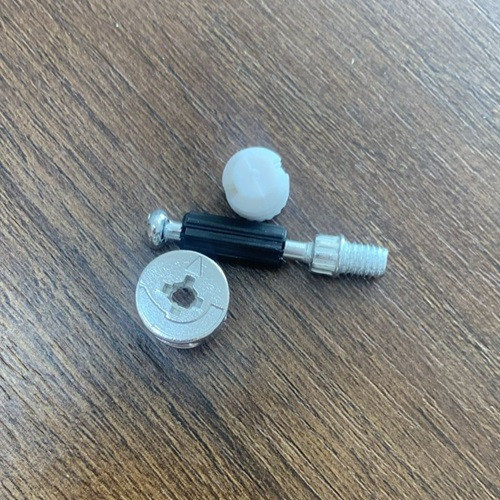 Dowel / Bushing: A cylindrical plastic or metal piece inserted into a pre-drilled hole in the second panel (such as a side panel). The connecting screw passes through it.