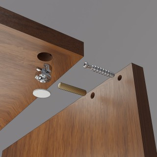 Connecting Bolt / Dowel Screw: A metal screw with a special head. It is pre-installed in the edge of the panel to be connected (such as a shelf panel).