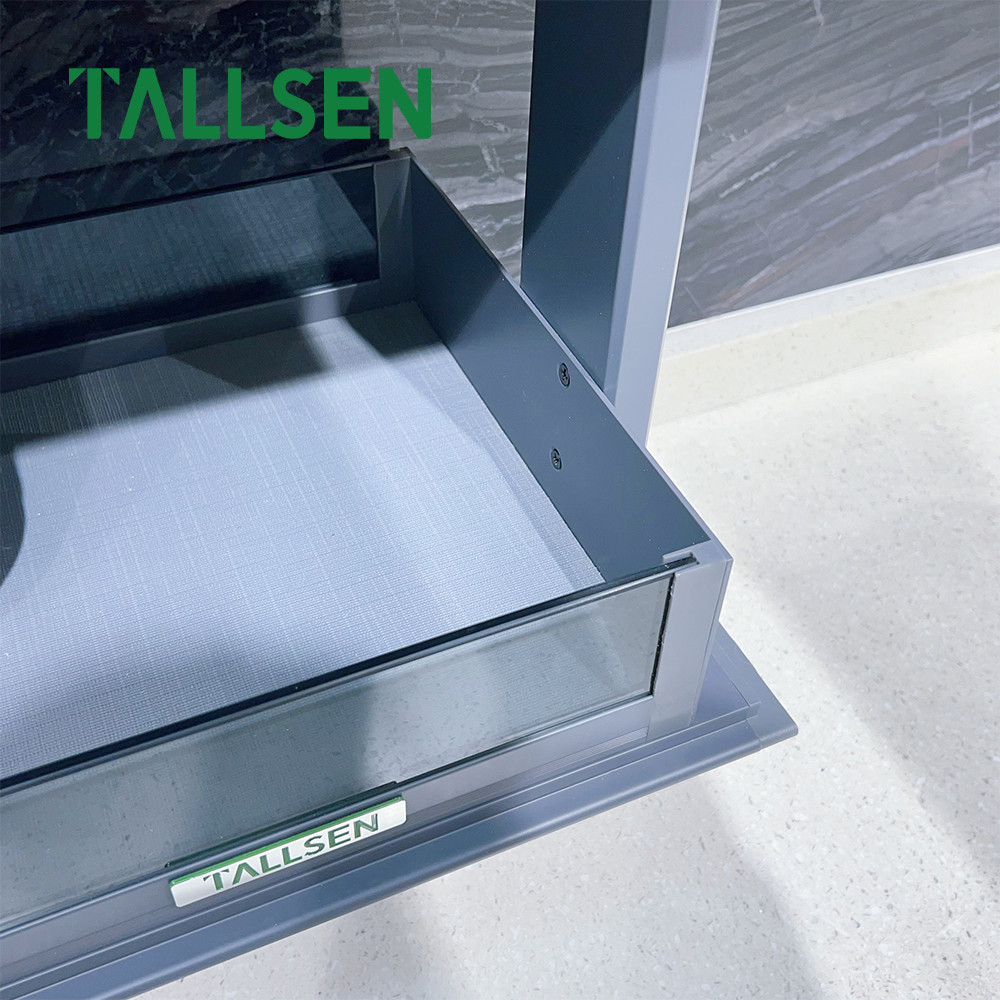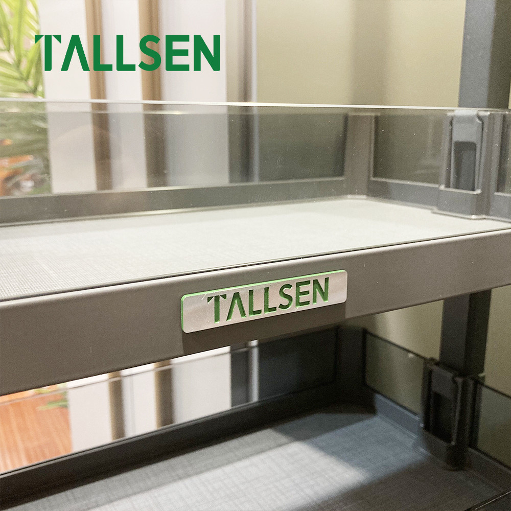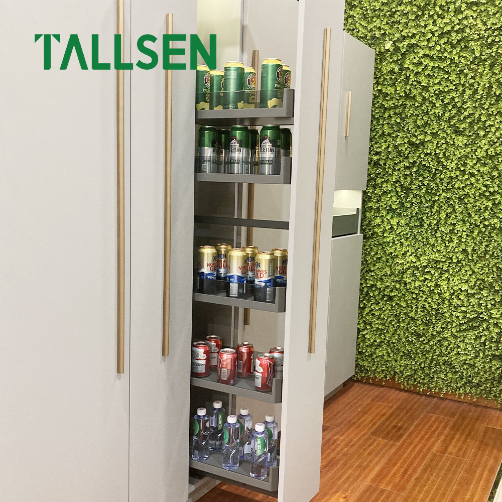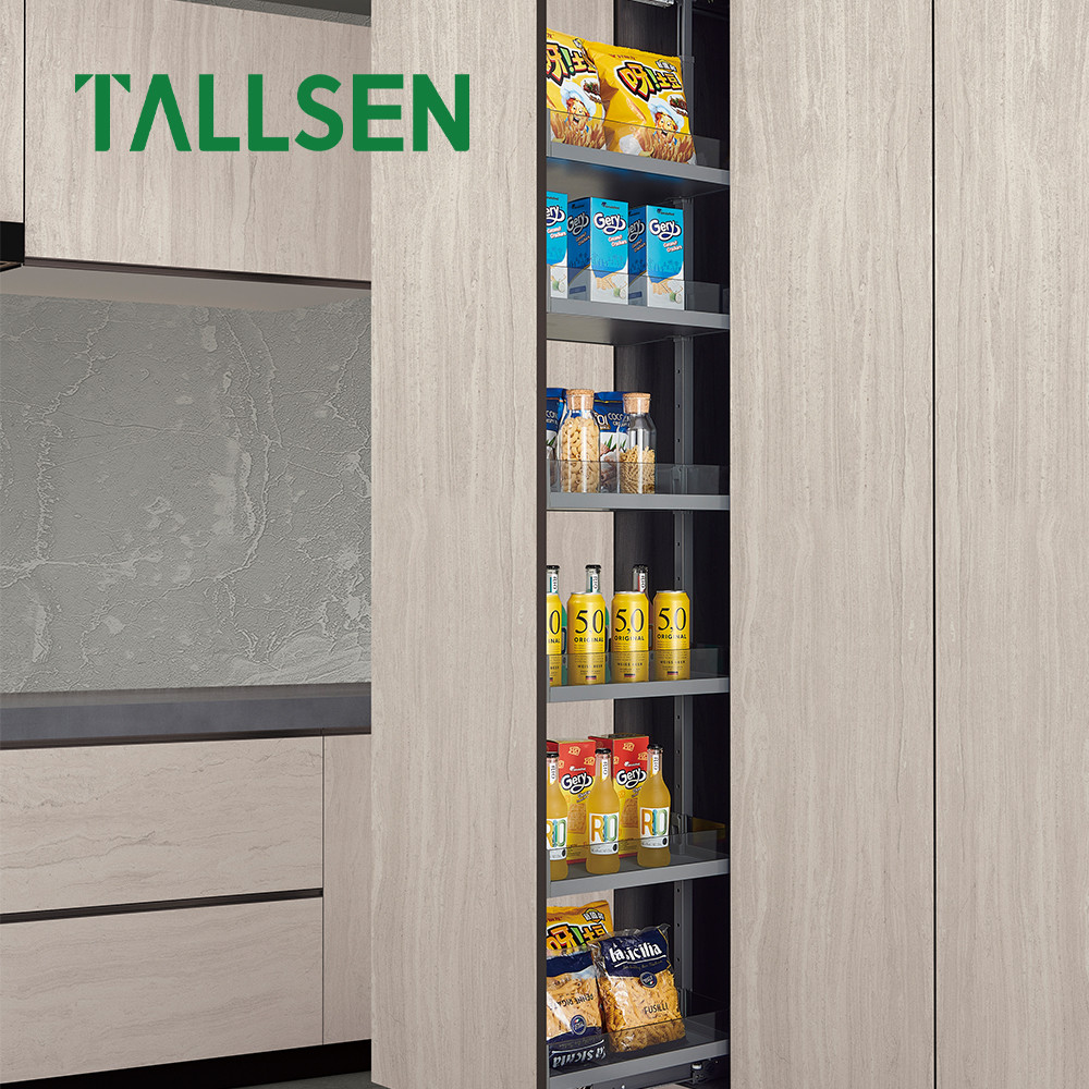 The Glass Tall Unit Basket is a luxury accessory that combines innovative storage function with contemporary aesthetics. This basket is designed to fit tall kitchen units or vertical pantry cabinets, featuring edges or sides made of clear tempered glass, which provides full visibility of the stored contents (such as food items, spices, or utensils) without needing to fully pull out the basket. The durable and supported full-extension slide mechanism ensures easy access to items stored deep within the unit, making it a perfect addition to high-end kitchens that merge order with transparency.