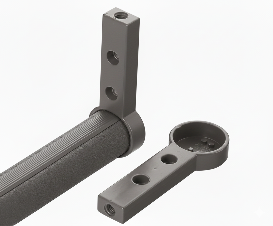 طقم تعليق ماسورة دائرية من الأعلى والجانب مصمم خصيصًا لتثبيت أنظمة الأبواب السحاب والدولايب السحاب بطريقة آمنة وثابتة، ويوفر دعم قوي للماسورة مع حركة سلسة للأبواب دون اهتزاز أو ضوضاء.