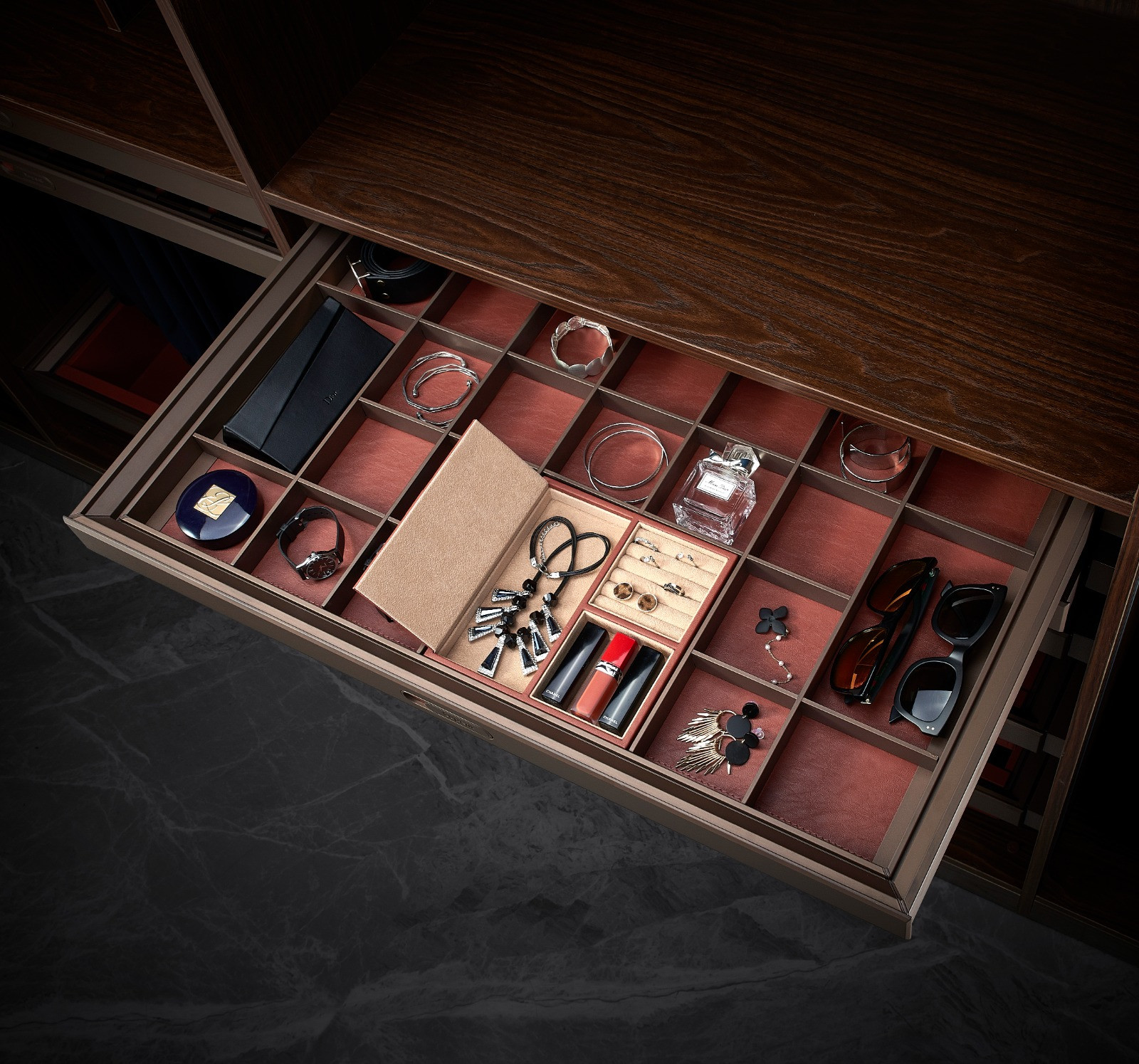 هو عبارة عن وحدة تخزين مصممة خصيصًا لتعليق البناطيل، تُركب داخل درج خزانة أو في وحدة خزانة مخصصة. تتميز هذه الوحدة بـ: