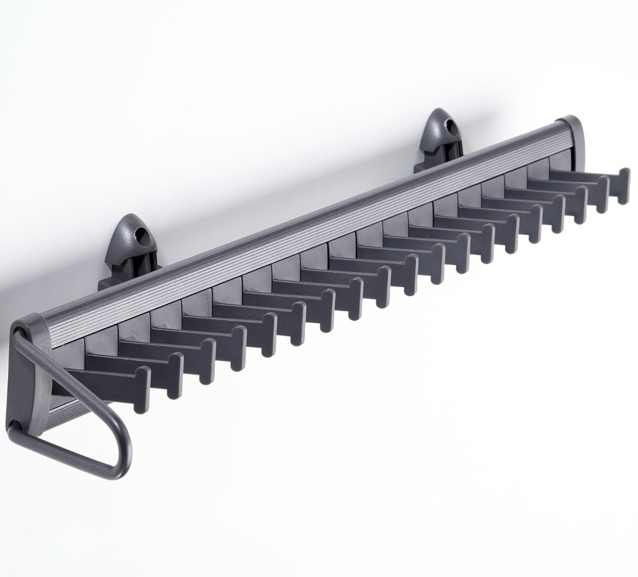 - المعلقة التقليدية: تُعلق على قضيب الملابس، وتوفر عددًا من الأذرع أو الفتحات لتعليق الكرفتات.